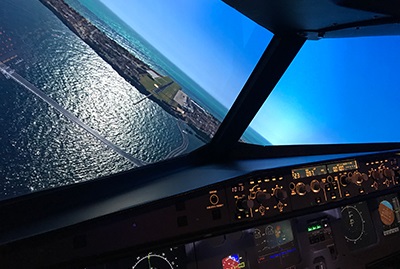 Der Flugsimulator ist ein originalgetreues Airbus A320 Cockpit mit echten Cockpitelementen. Jeder Schalter und Hebel erhält seine entsprechende Funktion, so dass auch erfahrene Piloten diesen z.B. für Screeningvorbereitungen nutzen können. Über 3 Beamer wird ein hochauflösendes Bild auf die Leinwand vor dem Cockpit produziert, was die Erfahrung eines nahezu realistischen Fluge intensiviert. Der Simulator gehört zu der Kategorie der sog. Fixbased Simulatoren. Das bedeutet, dass das Cockpit unbeweglich ist. Durch das Zusammenspiel von originaler Geräuschkulisse und der großen Projektionsfläche fühlt es sich dennoch so an, als ob das gesamte Cockpit sich bewegt.